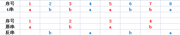 由性质1及其解释,我们知道所谓“原串”其实就是\(t\)串的奇数位,而\(t\)串就可以理解为在原串的两数间隙中插入一个反串。