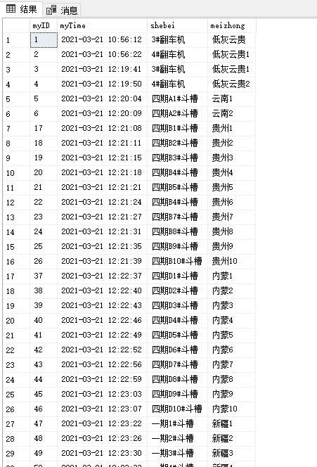 现场有一组储槽,装不同地区的煤,根据生产需要,每个槽储存的煤种不固定,中控工在citect2018运行界面上输入哥哥储槽的煤种,储槽煤种信息存放在sql server数据库,每次修改煤种信息就增加一条记录。有一个页面使用mshflexgrid控件显示各个储槽当前煤种信息,这就需要写脚本,脚本的核心就是sql查询语句。