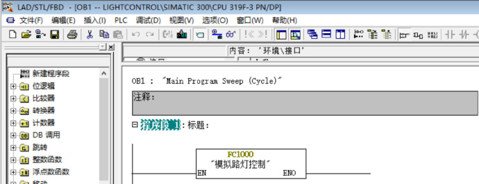 3. 新建一个功能FC1000,在OB1里面调用这个FC1000