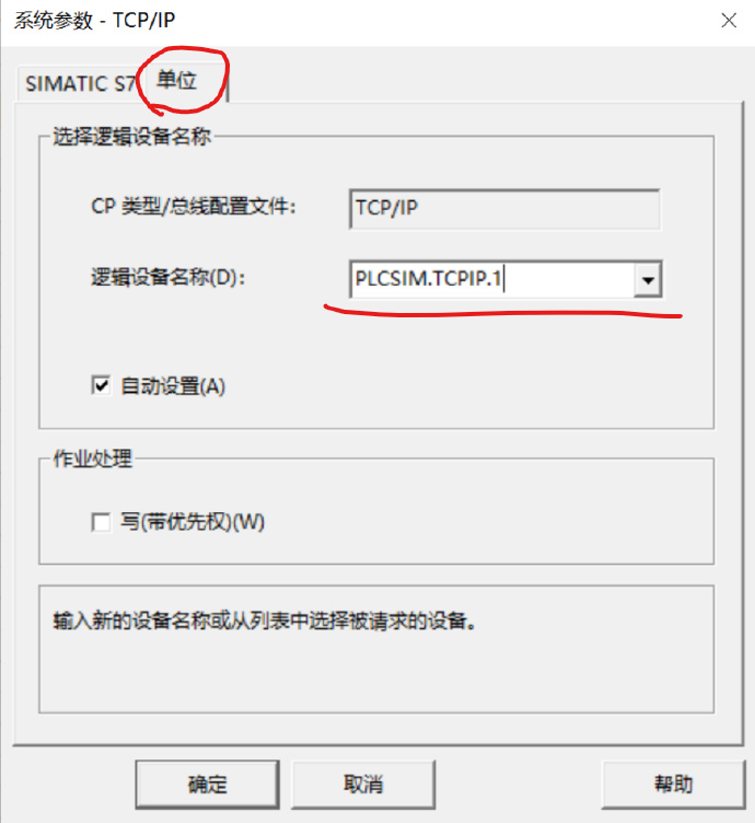 2. 在S7通讯协议组的TCP/IP通讯协议处点击鼠标右键,插入一个新的连接,使用默认的连接名称。在TCP/IP通讯协议处点击鼠标右键,哦欸之通讯参数,选择与模拟器通讯,因为没有实际的硬件。