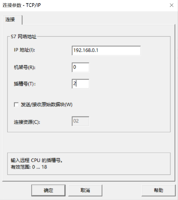 3. 在newconnection_1连接处点击鼠标游右键,选择设置连接参数.IP地址与前面下位机硬件设置时的IP地址一致,机架号0,槽号2。