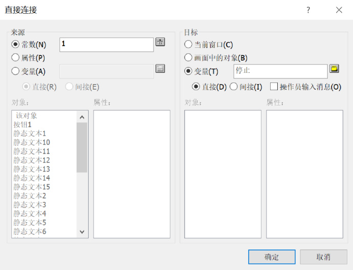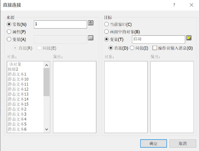 8. 启动按钮的鼠标点击事件设置直接连接,将常数1赋值给变量“启动”(前面在WINCC建立的变量)