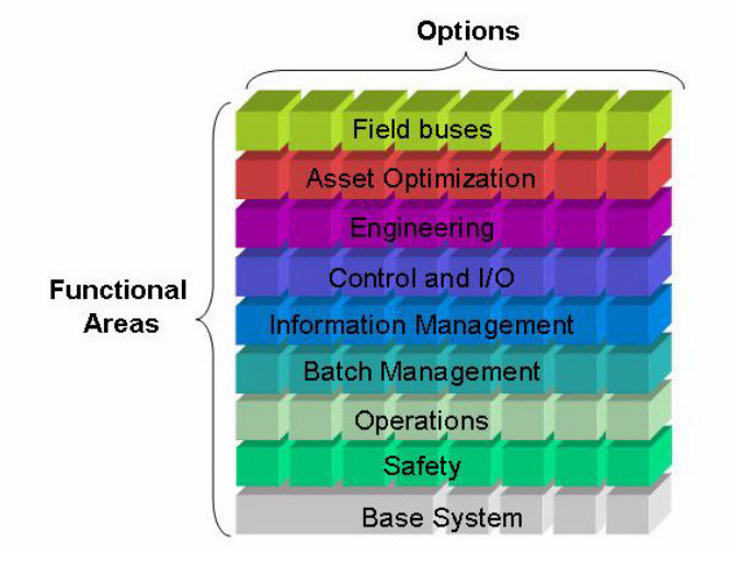 800xA 系统功能分为基本系统和一组选项,分组在功能区中。