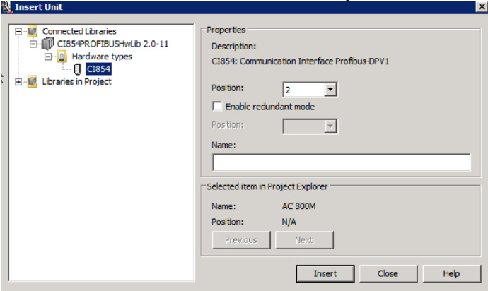 打开刚刚插入的控制器结构,右键单击硬件AC 800M并选择“插入单元”。