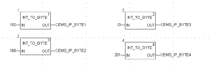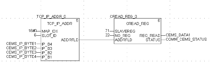 上图TCP_IP_ADDR功能块slot_ID指的是quantum PLC上用于通讯的模板槽号,现场实际是6#槽。如果是带TCP/IP的CPU模板,此处数值是254,注意后面的IP_B1至IP_B4与现场仪表设备的IP地址是反顺序的。