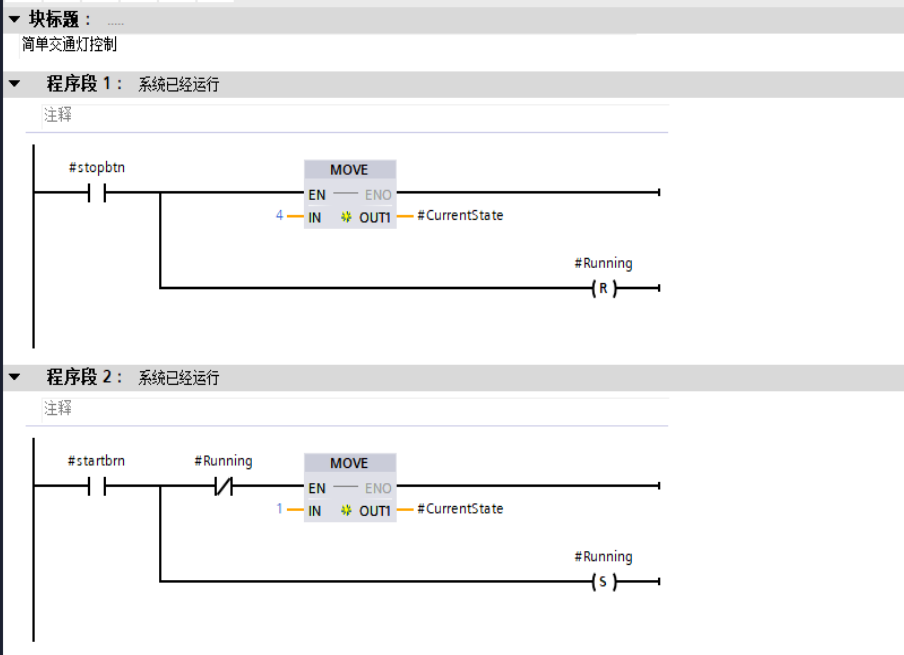修改FB1下的梯形图程序前两段如下,其它程序段不用修改。