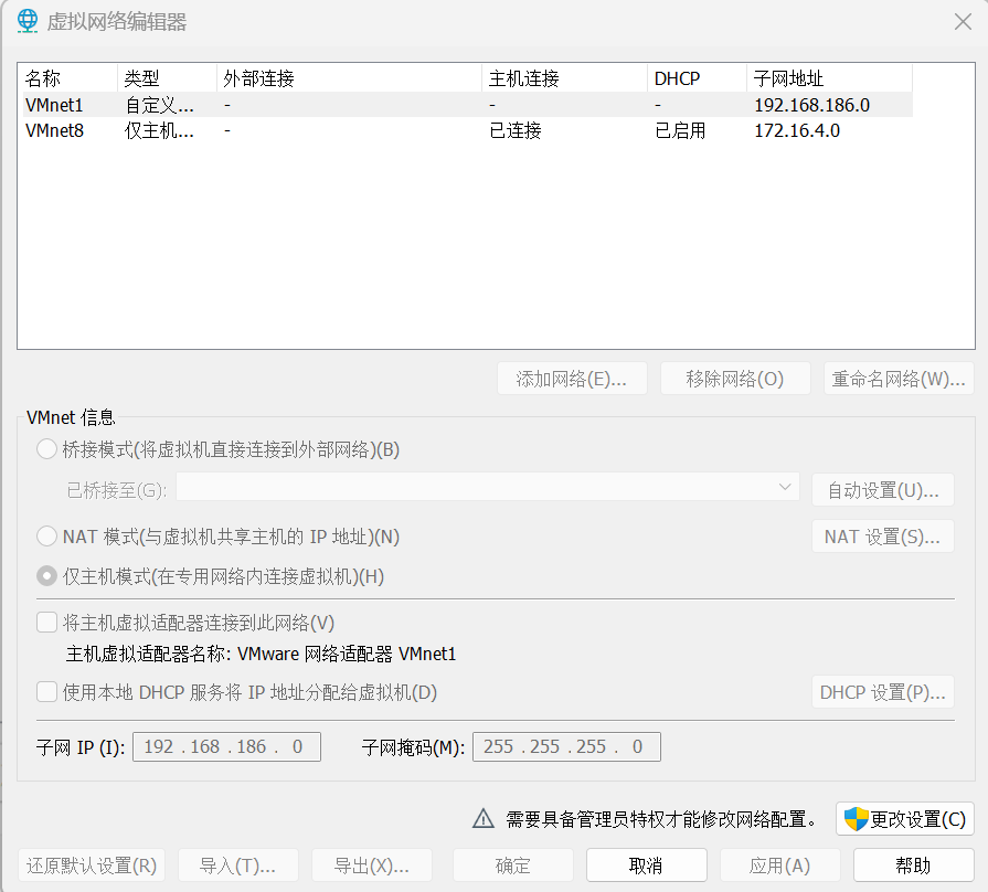 点击菜单编辑-虚拟网络编辑器,弹出对话框