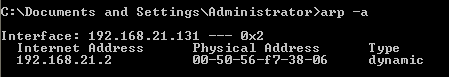 win xp在命令行输入arp -a 查看网关的mac地址 00-50-56-f7-38-06