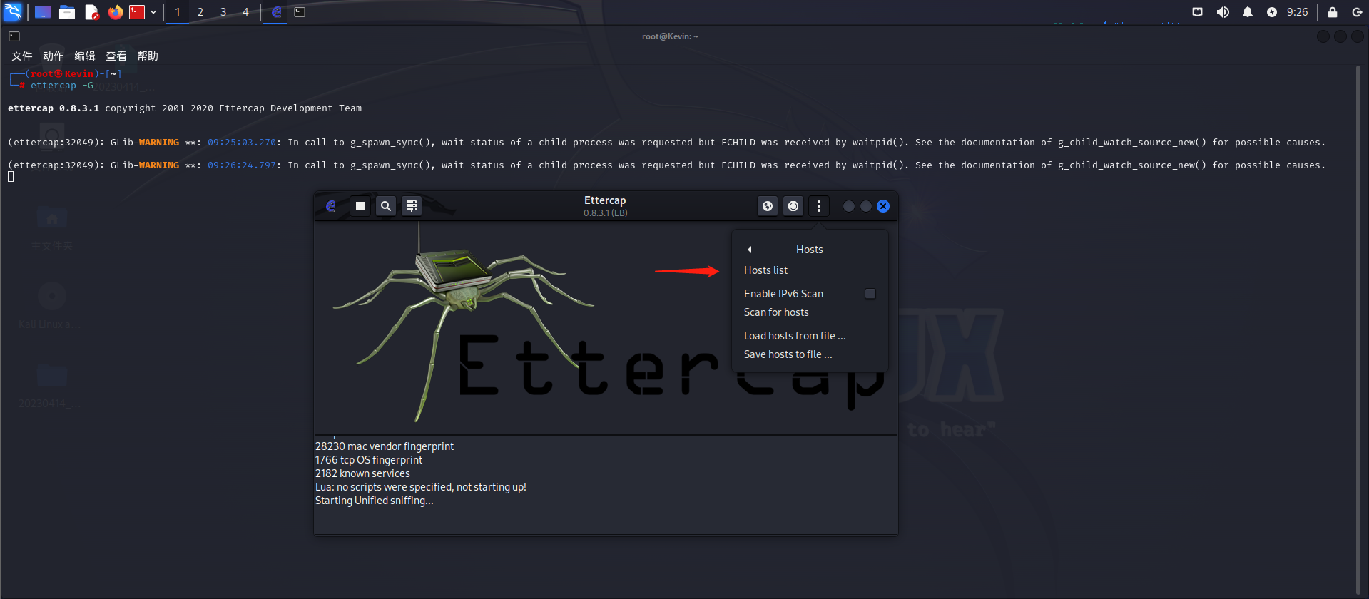 借助于EtterCap嗅探软件,渗透测试人员可以检测网络内明