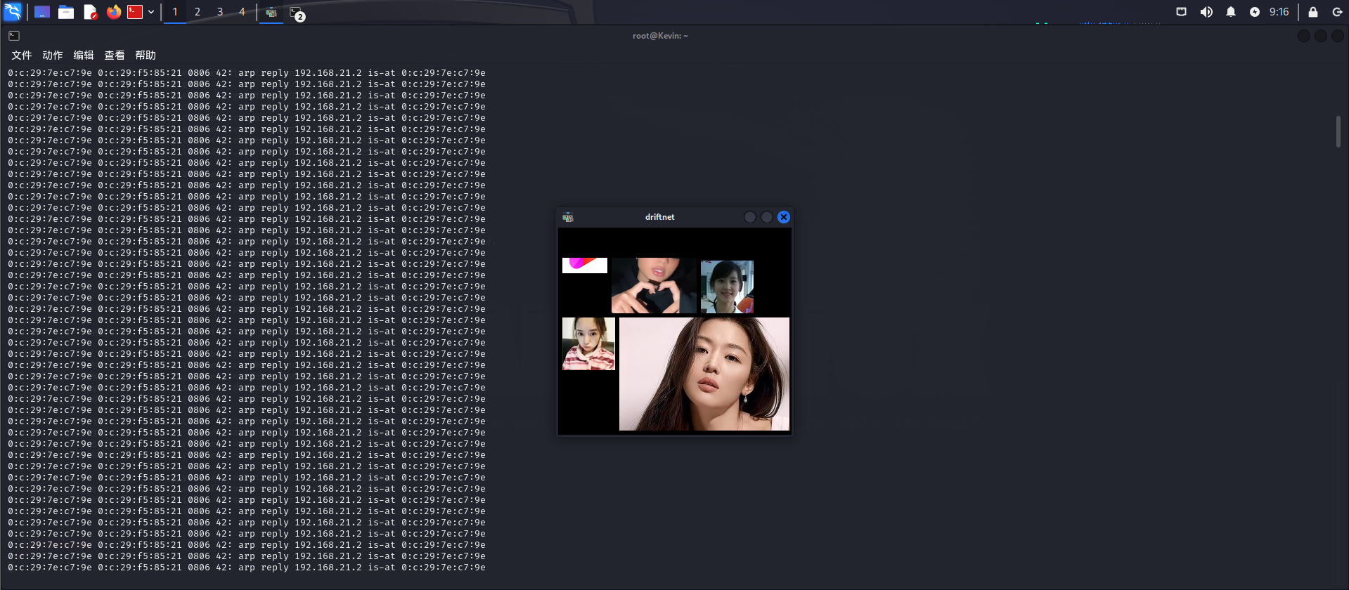 此时,winxp和网关通信的数据包都会流经kali,那么可以在 kali 中利用driftnet工具,可以捕获winxp机器正在浏览的图片.