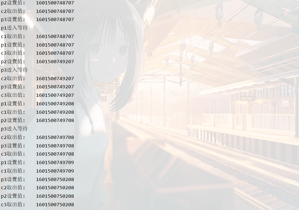 package com.edu.productCustomerDesign; /** * @作者 five-five * @创建时间 2020/9/23 */ public class Test { public static void main(String[] args) { MyValue value = new MyValue(); ProductThread p1 = new ProductThread(value); CustomerThread c1 = new CustomerThread(value); ProductThread p2 = new ProductThread(value); CustomerThread c2 = new CustomerThread(value); ProductThread p3 = new ProductThread(value); CustomerThread c3 = new CustomerThread(value); p1.setName("p1"); p2.setName("p2"); p3.setName("p3"); c1.setName("c1"); c2.setName("c2"); c3.setName("c3"); p1.start(); p2.start(); p3.start(); c1.start(); c2.start(); c3.start(); } }