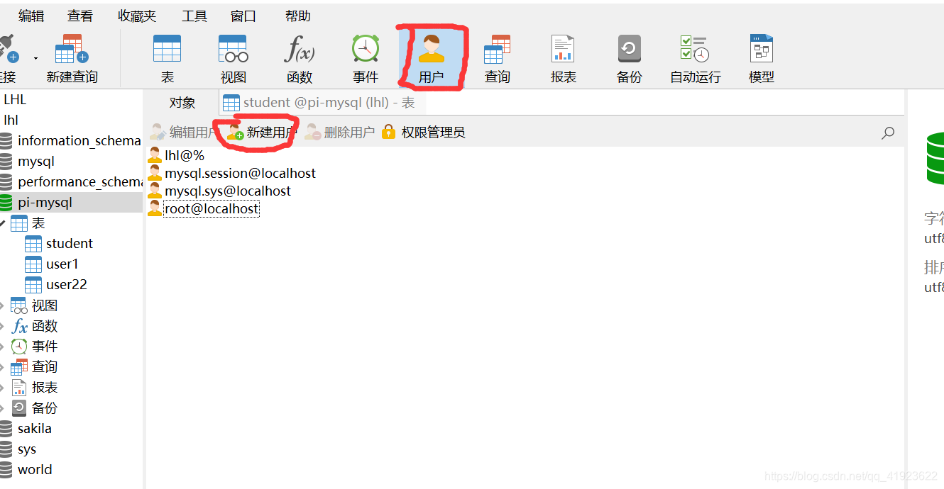 点击数据库 用户 --->新建用户