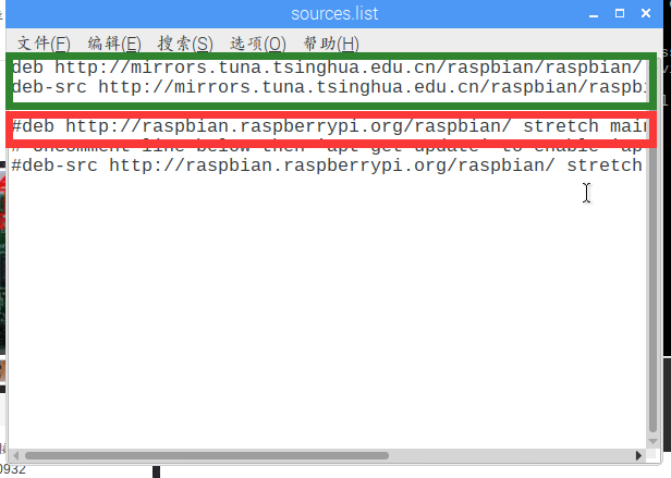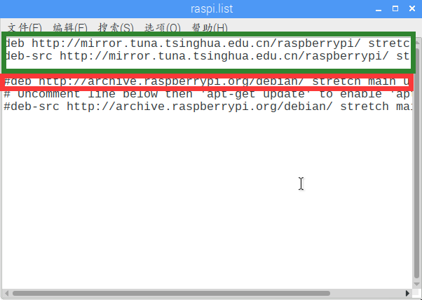 deb http://mirrors.tuna.tsinghua.edu.cn/raspbian/raspbian/ stretch main contrib non-free rpi
