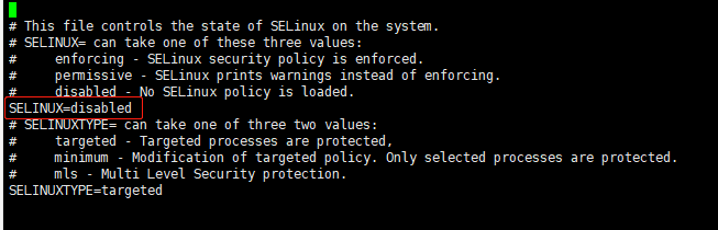 修改SELINUX参数值为disabled,然后重启服务器即可
