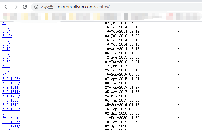 反之则无信息返回,那就需要手动进行安装,先使用yum Install命令进行安装即可,如果服务器在局域网无法连通外网,则可以手动在阿里云的yum源网页中下载:http://mirrors.aliyun.com/centos/