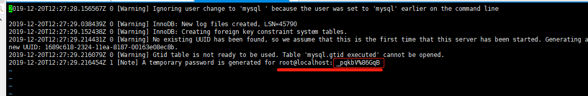 查看root用户的初始化密码,vi /home/mysql/initialize.log