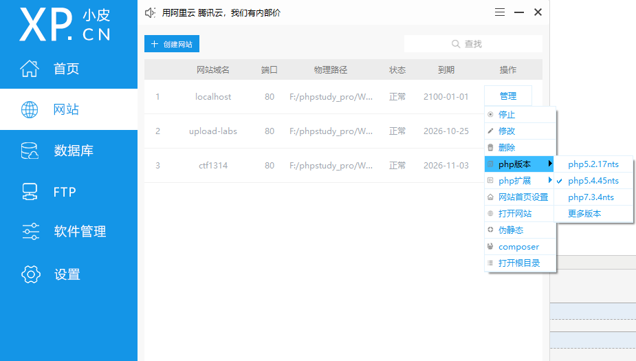 下载phpstudy https://www.xp.cn/download.html 并解压到phpstudy目录下www的文件夹下