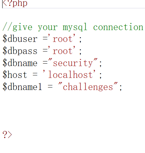 配置数据库文件在sqli-labs\sql-connections 下有个db-creds.inc 编辑里面的文件都改成root 用记事本或者其他软件改都可以效果一样
