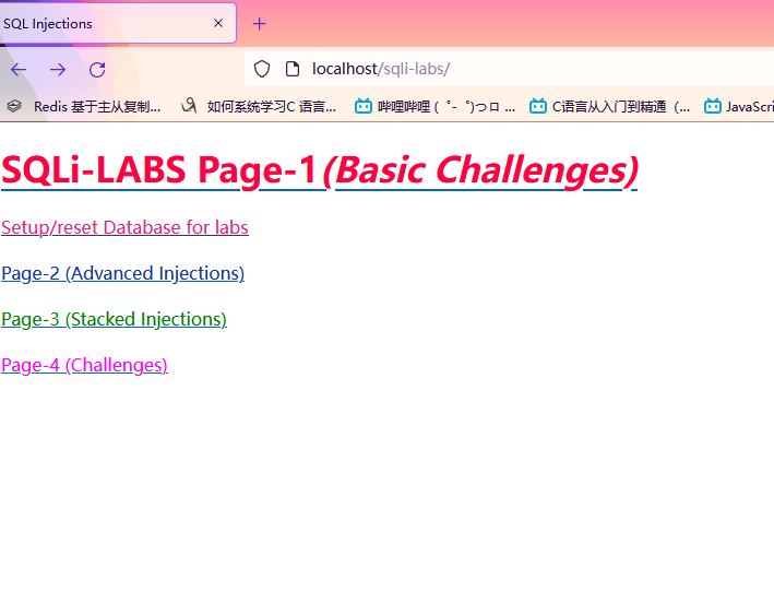 测试在浏览器中输入127.0.0.1/sql-labs 访问 或者localhost/sql-labs 效果一样 愉悦的开始打靶吧!!!
