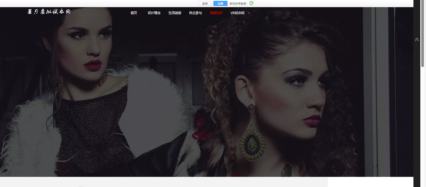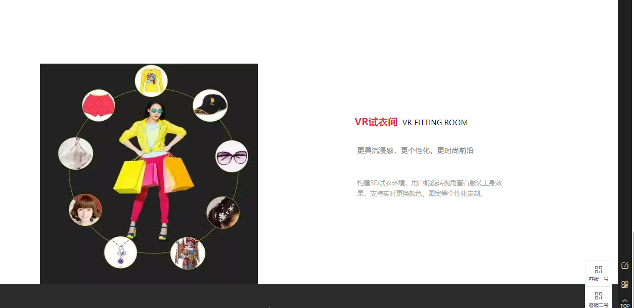 注册、登录,VR试衣、留言板、客服、产品查看、个人信息查看等功能。