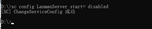 若是你没有用过“某极度安全卫士”的话,你的 445 端口应该是一直被 LanmanServer 占用的,这个 LanmanServer 就是帮你把你电脑的文件分享给别人。所以你要把这个服务禁用了,这个服务显示的名字叫“Server”,你可以在 Windows 送的“服务”管理页面中看到(点击任务管理中的“服务”即可开启),然后禁用它。但我更喜欢用命令行操作。运行以下命令(要是运行后会显示"成功"二字):