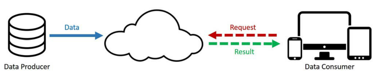 Push From IoT:在当前的发展来看,几乎所有带电的设备都将成为物联网的一部分,它们将扮演数据生产者和消费者的角色。那么我们可以知道它们产生的原始数据将是巨大的,这使得传统的云计算效率不足以处理这些数据,因此物联网产生的大部分数据永远不会传输到云,而是在网络边缘消耗。下图为传统的云计算结构,但是这种结构并不足以实现物联网。