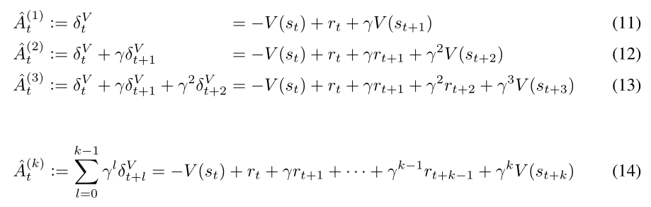我们看到,即一个k步的折扣回报和减去一个基线函数,当使,可以得到:
