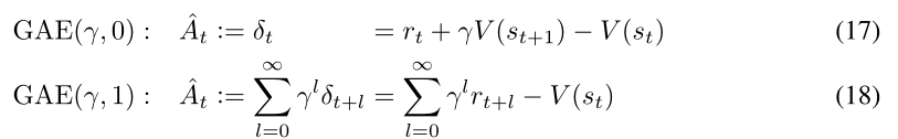 那么令,并且为了防止远距离奖励带来的噪声,因此加上一个更快的衰减,就得到了前面定义的GAE: