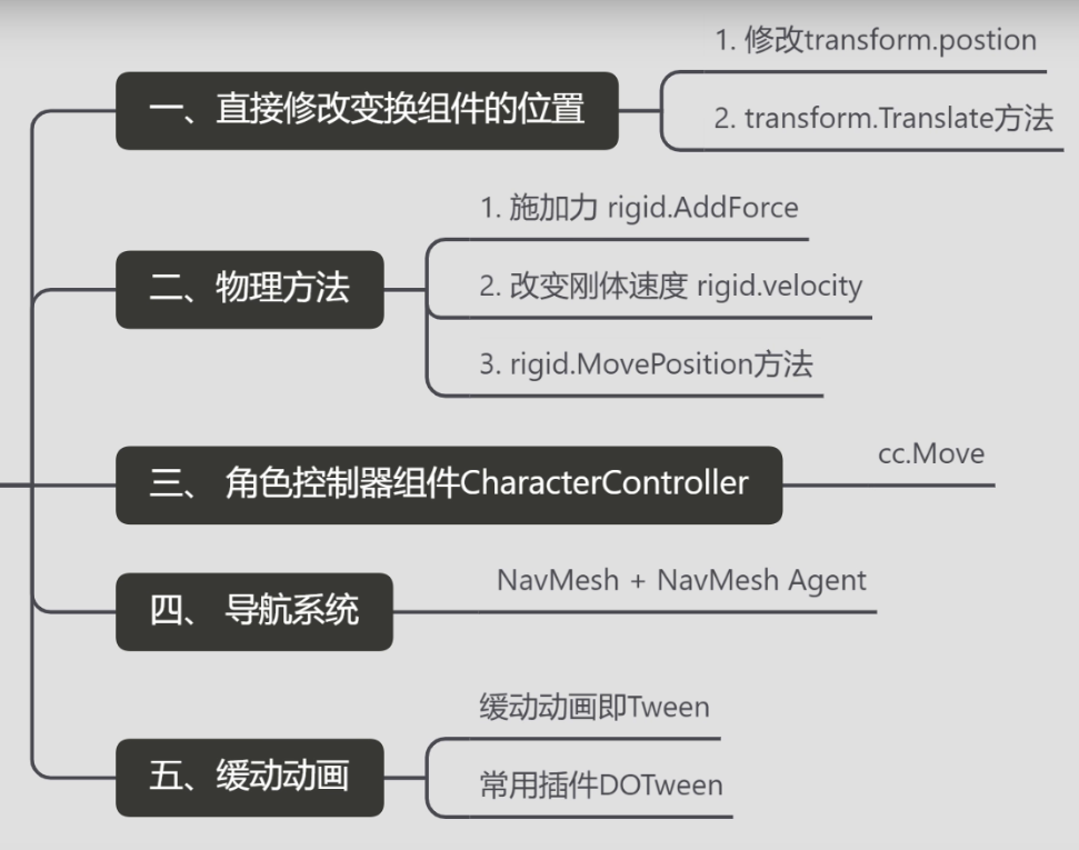 unity给我们提供了多种角色移动的思路 先简单整理下前三种