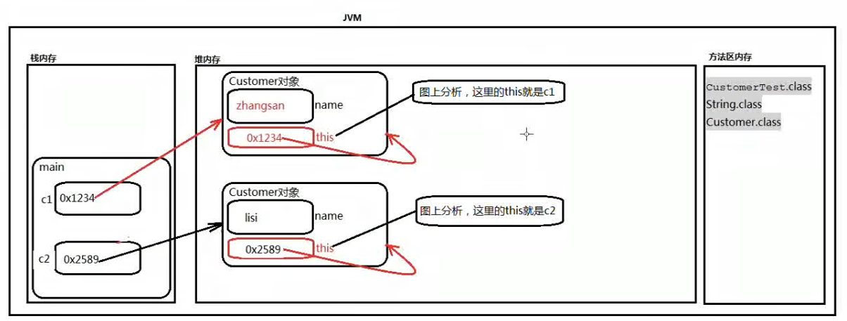- this 是一个引用,this是一个变量,this变量中保存的是指向本身对象的内存地址,this村住在JVM堆内存的对象中。