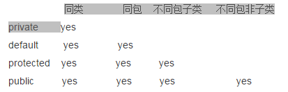- default:java的默认访问权限,当没有使用上面提到的任何访问限定词时,就使用它,这种权限通常被称为包访问权限,在这种权限下,类可以访问在同一个包中的其他类的成员,也即可以访问我们前面说的朋友,在包之外,这些成员如同指定了private。