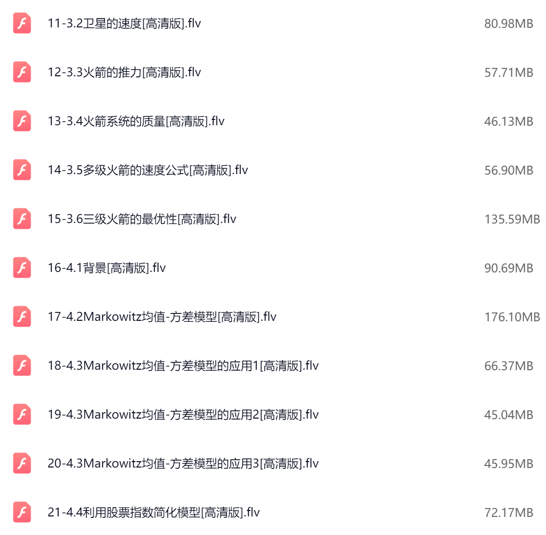 这一资源为与数学建模相关的视频课程资源,涵盖美赛、国赛等各类数学建模赛事(因为主要是对数学建模基本知识的介绍),包括数学建模思想、各类算法、实际案例等。