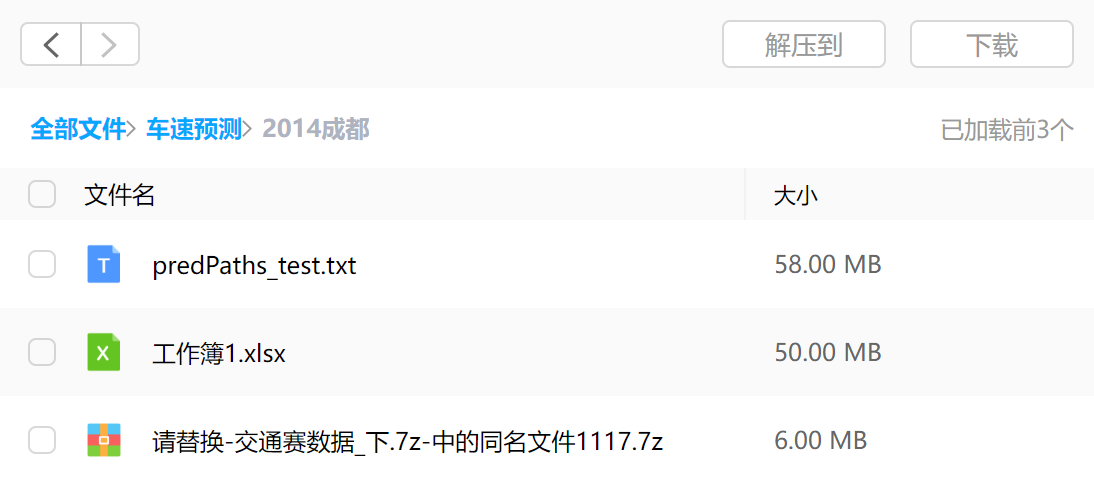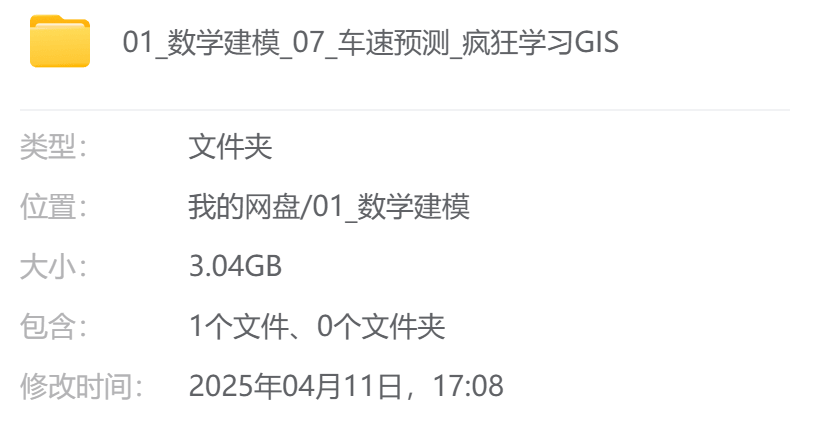 这一资源为与数学建模相关的车速预测场景资源,涵盖与车速预测题目相关的内容;文件夹中就是1个压缩包,我没有在本地解压这个压缩包仔细看,只是在线上解压大致看了一下——应该是包括了和车速预测相关的一些数据集。