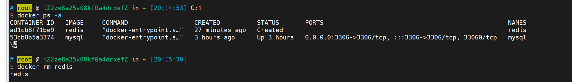docker rm -f mysql