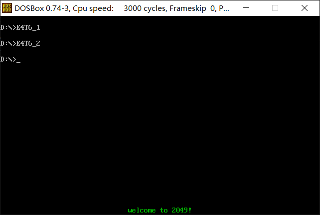 assume cs:code code segment start: ; 42 interrupt routine install code mov ax, cs mov ds, ax mov si, offset int42 ; set ds:si mov ax, 0 mov es, ax mov di, 200h ; set es:di mov cx, offset int42_end - offset int42 cld rep movsb ; set IVT(Interrupt Vector Table) mov ax, 0 mov es, ax mov word ptr es:[42*4], 200h mov word ptr es:[42*4+2], 0 mov ah, 4ch int 21h int42: jmp short int42_start str db "welcome to 2049!" len equ $ - str ; display string "welcome to 2049!" int42_start: mov ax, cs mov ds, ax mov si, 202h mov ax, 0b800h mov es, ax mov di, 24*160 + 32*2 mov cx, len s: mov al, [si] mov es:[di], al mov byte ptr es:[di+1], 2 inc si add di, 2 loop s iret int42_end: nop code ends end start