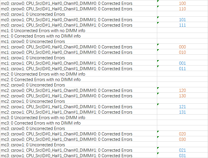 Nov 21 17:43:08 host142 kernel: EDAC MC0: 3 CE memory scrubbing error on CPU_SrcID#1_Ha#0_Chan#0_DIMM#0 or CPU_SrcID#1_Ha#0_Chan#0_DIMM#1 (channel:0 page:0x2b980fe offset:0x0 grain:32 syndrome:0x0 - OVERFLOW area:DRAM err_code:0008:00c0 socket:1 ha:0 channel_mask:1 rank:255)