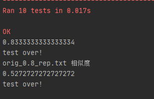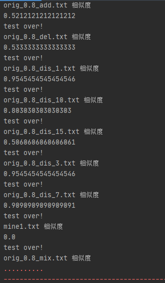 similarity = lc2.compare("C:\测试文件\orig.txt","C:\测试文件\orig_0.8_rep.txt")