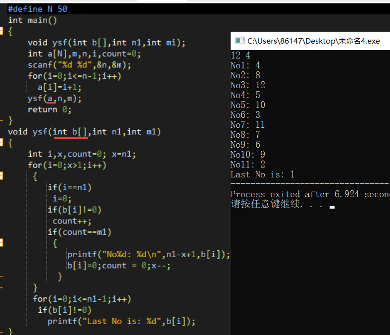 今天老师讲的一个题目,在调用函数 ysf 时,如何理解实参a用int b[ ]来接收