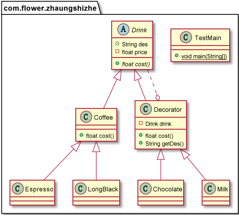 - Drink是一个抽象类,表示饮料