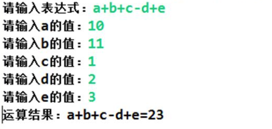 1)先输入表达式的形式,比如a+b+c-d+e,要求表达式的字母不能重复