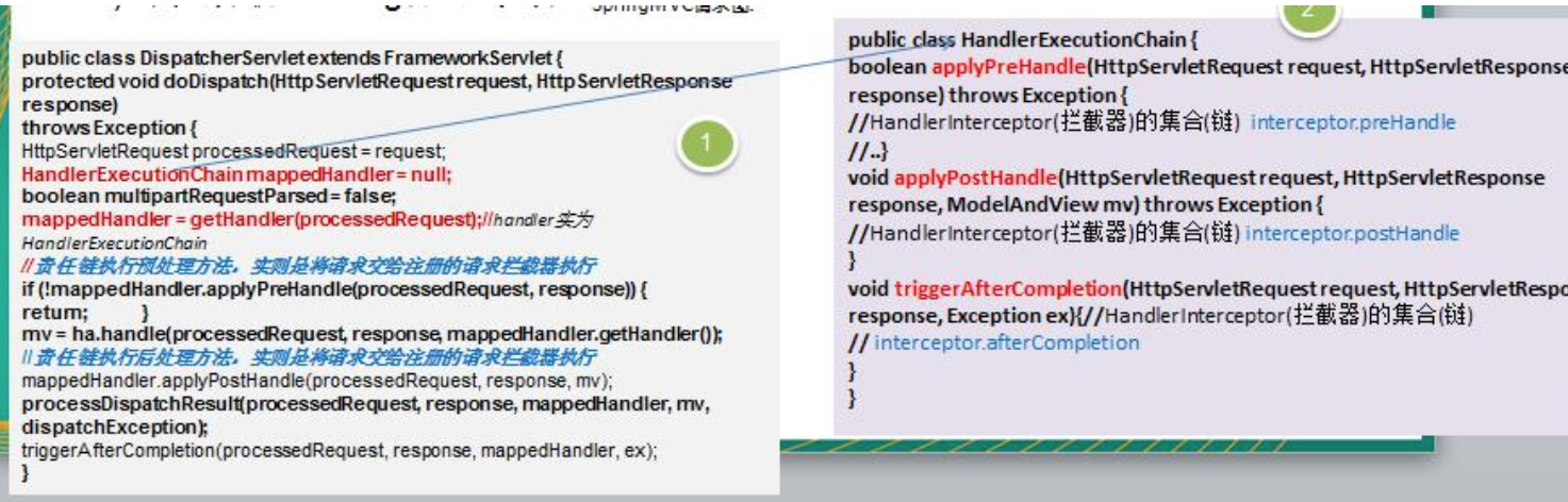 springmvc请求的流程图中,执行了拦截器相关方法interceptor.preHandler等等