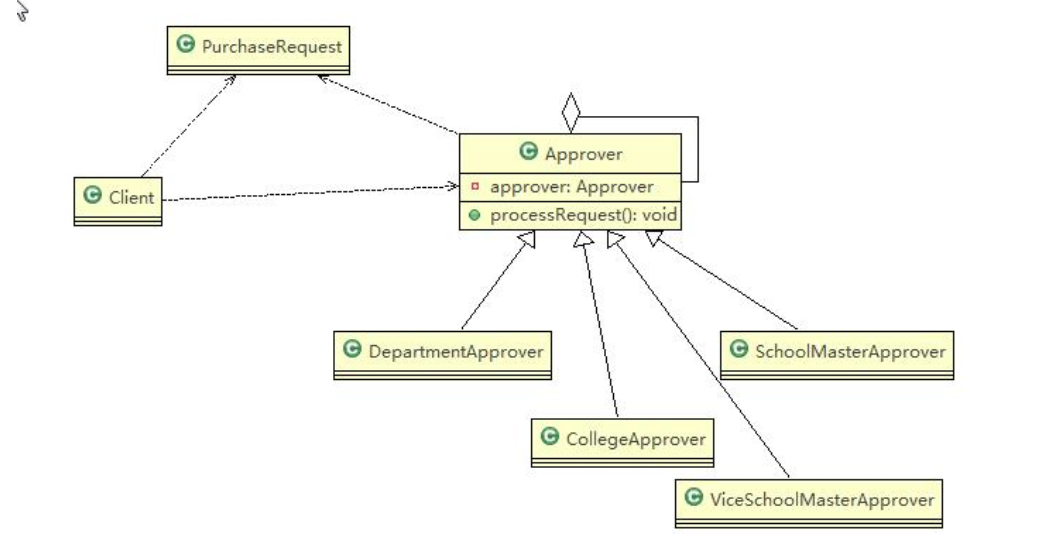 3)这样对一个采购请求进行处理和Approver(审批人)就存在强耦合关系,不利于代码的扩展和维护