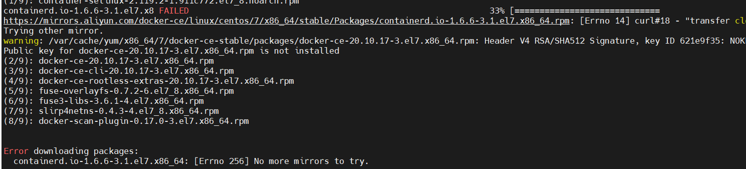 再次执行 yum install -y docker-ce
