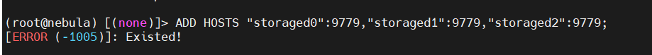 ADD HOSTS "storaged0":9779,"storaged1":9779,"storaged2":9779;