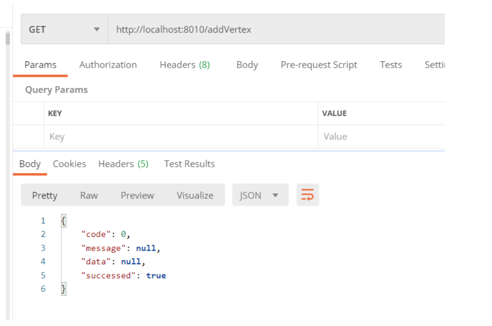 @RestController public class TestController { @Resource NebulaTemplate nebulaTemplate; @GetMapping("/addVertex") public Object addJSON() throws IOErrorException { String sql = "insert vertex team(team_name, persion_num) values \"team_2\":(\"team_2\", 43);"; NebulaResult nebulaResult = nebulaTemplate.executeObject(sql); return nebulaResult; } @GetMapping("/findVertex") public Object findJson2() throws IOErrorException { String sql = "lookup on team yield id(vertex) AS id,properties(vertex).persion_num AS persion_num,properties(vertex).team_name AS team_name;"; NebulaResult<Info> infoNebulaResult = nebulaTemplate.queryObject(sql, Info.class); return infoNebulaResult; } }