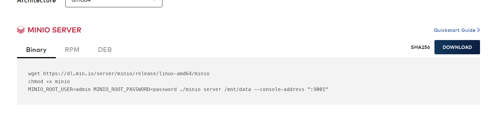 MINIO_ROOT_USER=admin MINIO_ROOT_PASSWORD=password
