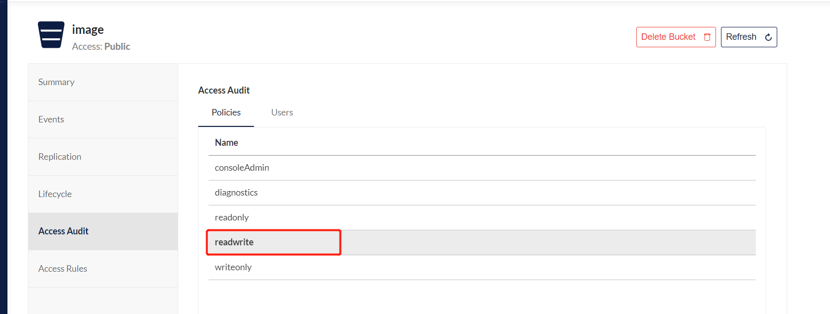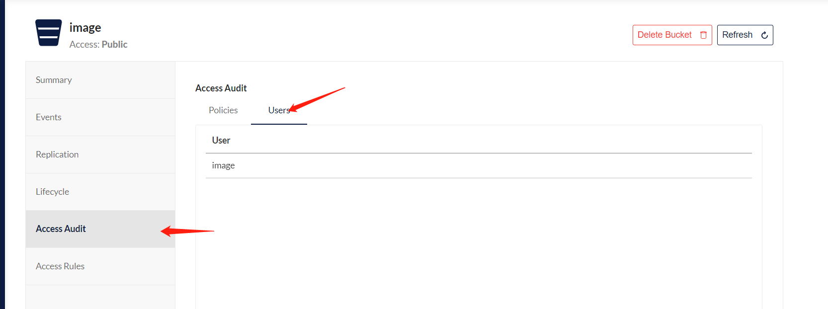 在存储桶的用户中能看到就可以