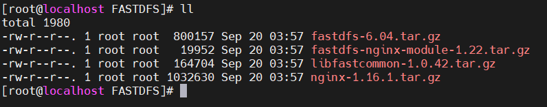 # 安装libfastcommon tar -zxvf libfastcommon-1.0.42.tar.gz cd libfastcommon-1.0.42/ ./make.sh ./make.sh install # 安装FastDFS本体 cd ../ tar -zxvf fastdfs-6.04.tar.gz cd fastdfs-6.04/ ./make.sh ./make.sh install cd conf/ cp * /etc/fdfs/