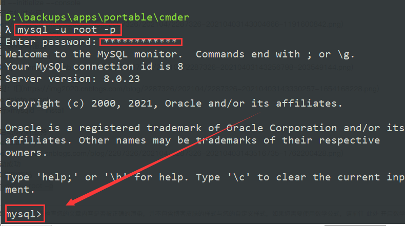 如图出现出现(mysql> )字样代表成功