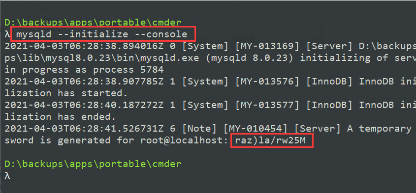 mysqld --initialize --console